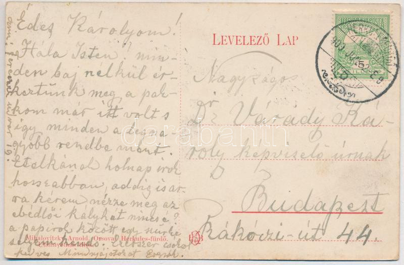 1909 Herkulesfürdő, Herkulesbad, Baile Herculane; 100 év múlva a jövőben montázs. Mihalovitzky Arnold kiadása (Orsova-Herkules-fürdő) / in the future montage (EK)