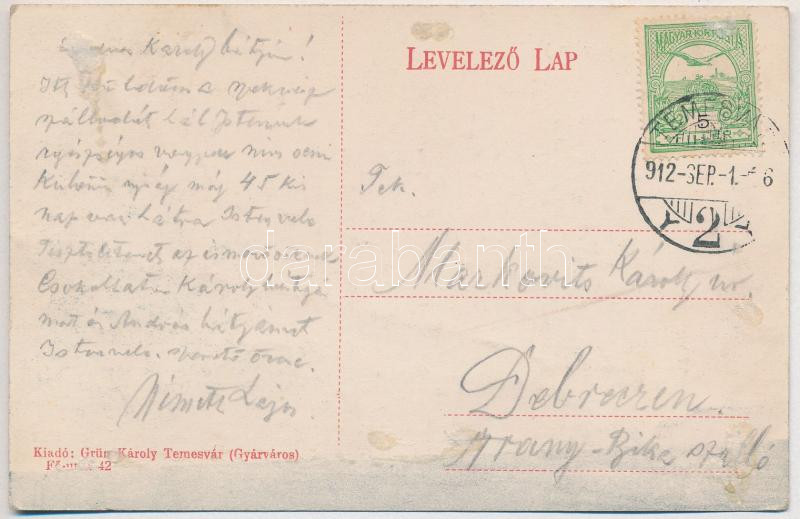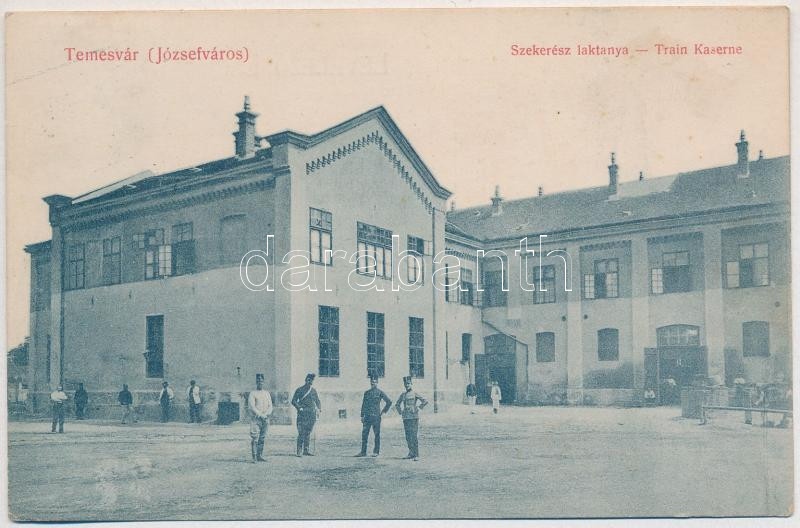 1912 Temesvár, Timisoara; Józsefváros, Szekerész kaszárnya. Grün Károl... https://www.darabanth.com/de/432-Fernauktion/432.0/Ansichtskarten/Siebenburgen~2000006/1912-Temesvar-Timisoara-Jozsefvaros-Szekeresz-kaszarnya-Grun-Karoly-kiadasa-Train-Kase~II2784184