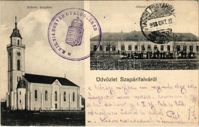 1916 Szapáryfalva, Szapárifalva, Tipari; Református templom, állami is... https://www.darabanth.com/de/432-Fernauktion/432.0/Ansichtskarten/Siebenburgen~2000006/1916-Szaparyfalva-Szaparifalva-Tipari-Reformatus-templom-allami-iskola-Schlanger-Karoly-C3~II2778244