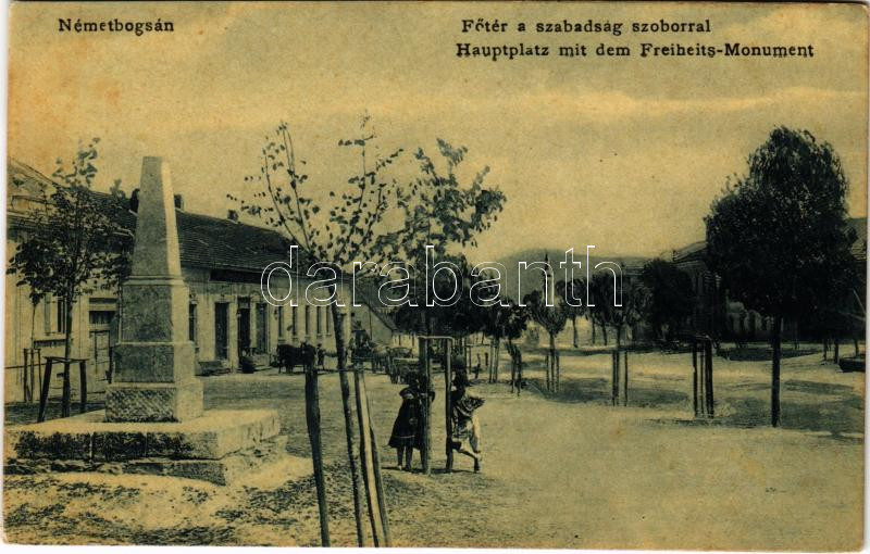 Beschreibung: Boksánbánya, Németbogsán, Deutsch-Bogsan, Bocsa Montana; Fő tér, Szabadság szobor. W.L. 1129. / Hauptplatz, Freiheits Monument / main square, statue (fl)