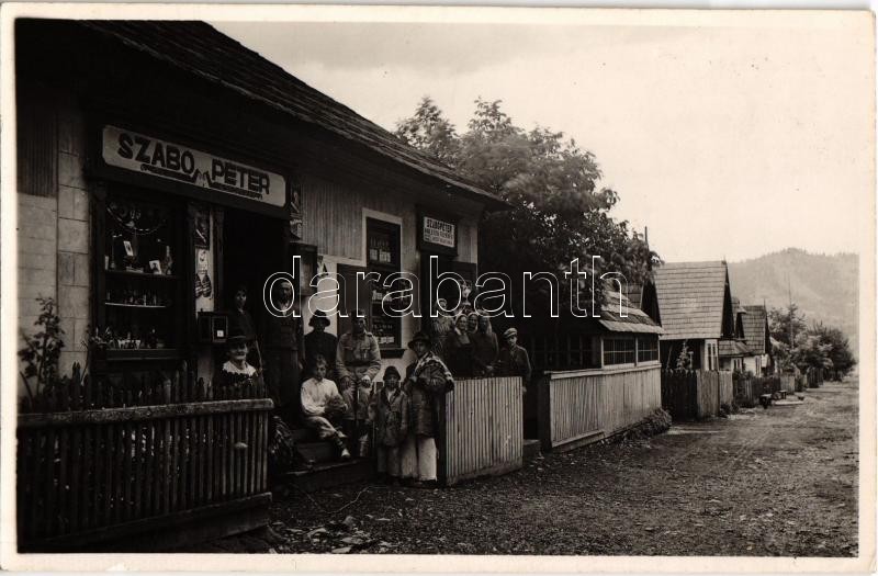 Borsabánya, Baile Borsa; utcakép, Szabó Péter üzlete és korlátlan ital... https://www.darabanth.com/de/432-Fernauktion/432.0/Ansichtskarten/Siebenburgen~2000006/Borsabanya-Baile-Borsa-utcakep-Szabo-Peter-uzlete-es-korlatlan-italmerese-street-view-~II2127932