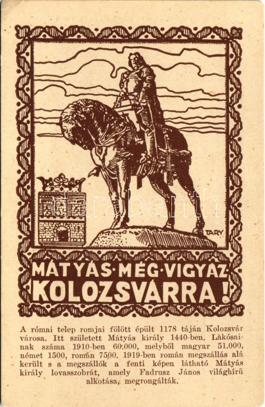 Kolozsvár, Cluj; Mátyás még vigyáz Kolozsvárra! irredenta képeslap Mát... https://www.darabanth.com/de/432-Fernauktion/432.0/Ansichtskarten/Siebenburgen~2000006/Kolozsvar-Cluj-Matyas-meg-vigyaz-Kolozsvarra-irredenta-kepeslap-Matyas-kiraly-szoborral~II2786756