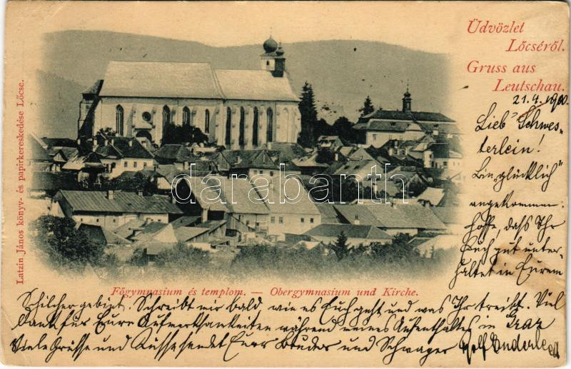 1900 Lőcse, Levoca; Főgimnázium és templom. Latzin János kiadása / Obe... https://www.darabanth.com/de/432-Fernauktion/432.0/Ansichtskarten/Slowakei~2000007/1900-Locse-Levoca-Fogimnazium-es-templom-Latzin-Janos-kiadasa-Obergymnasium-und-Kirche-~II2783982