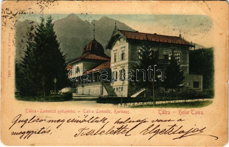 1901 Tátralomnic, Tatranská Lomnica (Magas-Tátra, Vysoké Tatry); Tátra... https://www.darabanth.com/de/432-Fernauktion/432.0/Ansichtskarten/Slowakei~2000007/1901-Tatralomnic-Tatranska-Lomnica-Magas-Tatra-Vysoke-Tatry-Tatra-Lomnicz-szalloda-hote~II2786105