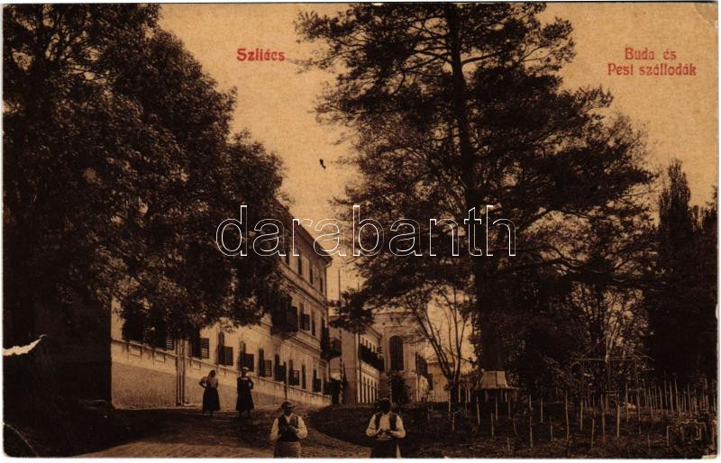 1907 Szliács, Sliac; Buda és Pest szállodák. Kerekes Miklós kiadása 98... https://www.darabanth.com/de/432-Fernauktion/432.0/Ansichtskarten/Slowakei~2000007/1907-Szliacs-Sliac-Buda-es-Pest-szallodak-Kerekes-Miklos-kiadasa-981-hotels-spa-szakad~II2779539