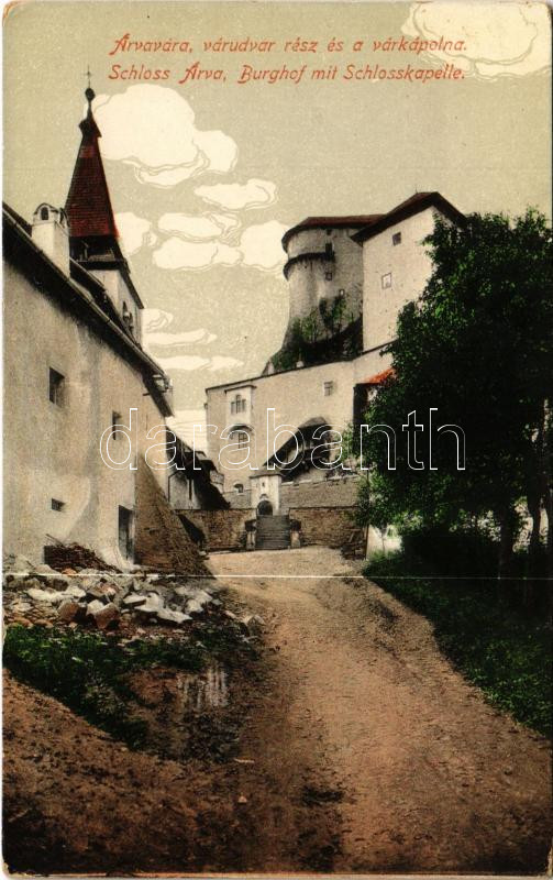 1917 Árvaváralja, Oravsky Podzámok; Árva vára, várudvar és várkápolna.... https://www.darabanth.com/de/432-Fernauktion/432.0/Ansichtskarten/Slowakei~2000007/1917-Arvavaralja-Oravsky-Podzamok-Arva-vara-varudvar-es-varkapolna-Feitzinger-Ede-Nr-8~II2786305