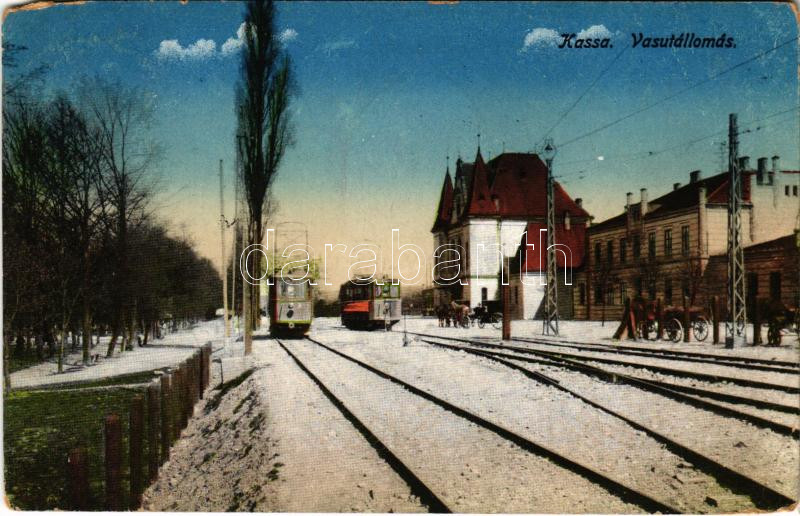 1917 Kassa, Kosice; Vasútállomás, villamosok / Bahnhof / railway stati... https://www.darabanth.com/de/432-Fernauktion/432.0/Ansichtskarten/Slowakei~2000007/1917-Kassa-Kosice-Vasutallomas-villamosok-Bahnhof-railway-station-trams-EM~II2782163