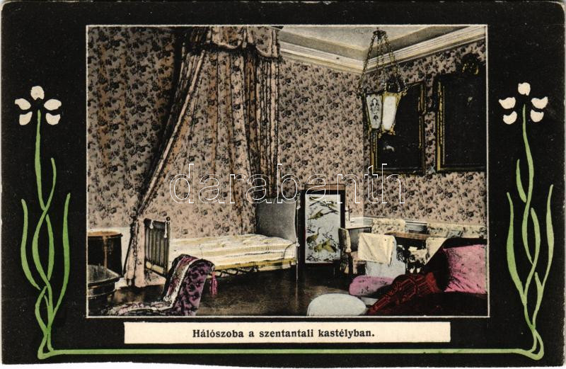 Szentantal, Svaty Anton; hálószoba a kastélyban, belső. Joerges 1908 /... https://www.darabanth.com/de/432-Fernauktion/432.0/Ansichtskarten/Slowakei~2000007/Szentantal-Svaty-Anton-haloszoba-a-kastelyban-belso-Joerges-1908-castle-interior-bedroom~II2777013