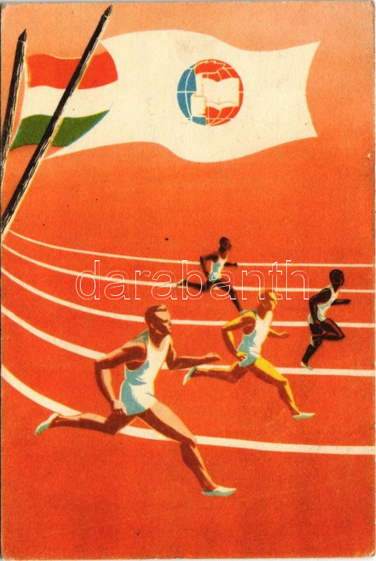 1949 Budapest X. Főiskolai Világbajnokság reklámlapja. Világifjúsági és Diáktalálkozó / 10th World University Summer Games. World Festival of Youth and Students + So. Stpl. (EK)