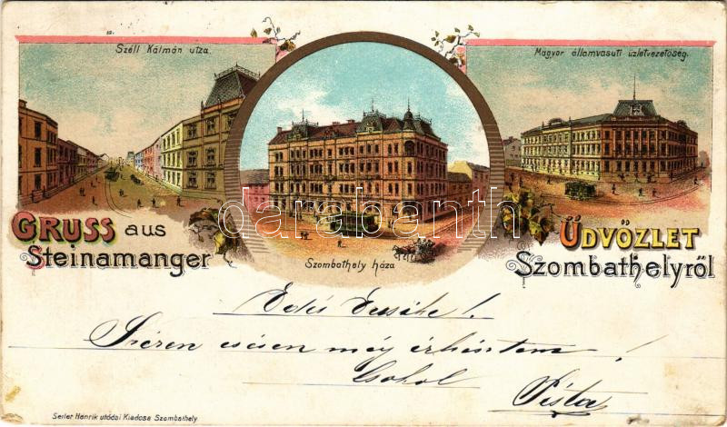 1898 (Vorläufer) Szombathely, Széll Kálmán utca, Szombathely háza, Magyar Államvasúti Üzletvezetőség. Seiler Henrik utódai, Art Nouveau, floral, litho (EK)