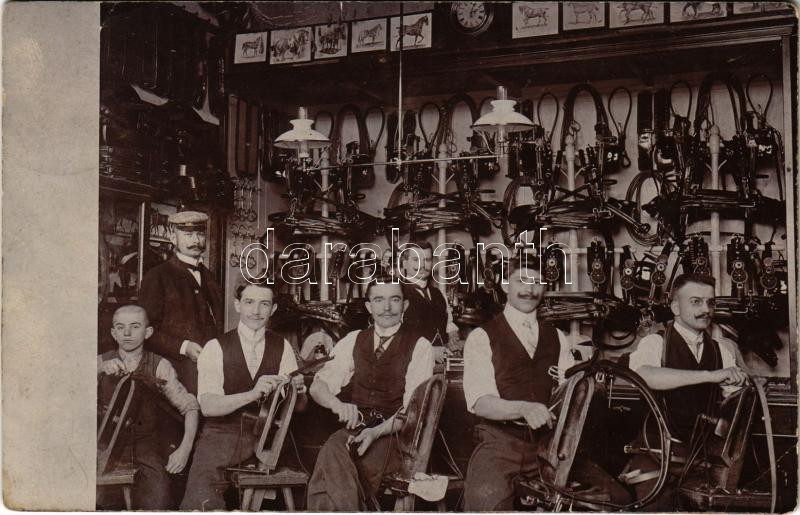 1907 Budapest, lószerszám és szíjgyártó műhely, belső munkásokkal. Szi... https://www.darabanth.com/de/432-Fernauktion/432.0/Ansichtskarten/Ungarn~2000005/1907-Budapest-loszerszam-es-szijgyarto-muhely-belso-munkasokkal-Szilagyi-fenykepesz-~II2788693