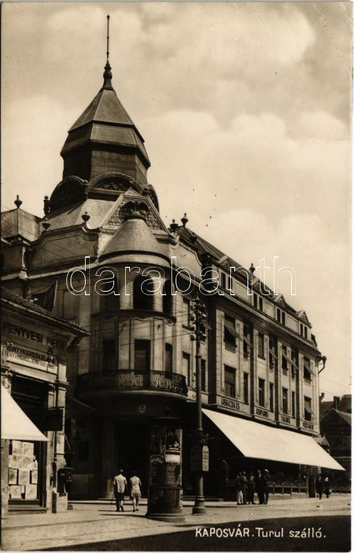 1928 Kaposvár, Turul szálló, hirdetőoszlop, Kisgazda és Kisiparos Taka... https://www.darabanth.com/de/432-Fernauktion/432.0/Ansichtskarten/Ungarn~2000005/1928-Kaposvar-Turul-szallo-hirdetooszlop-Kisgazda-es-Kisiparos-Takarekpenztar-rt-Fenyve~II2780406