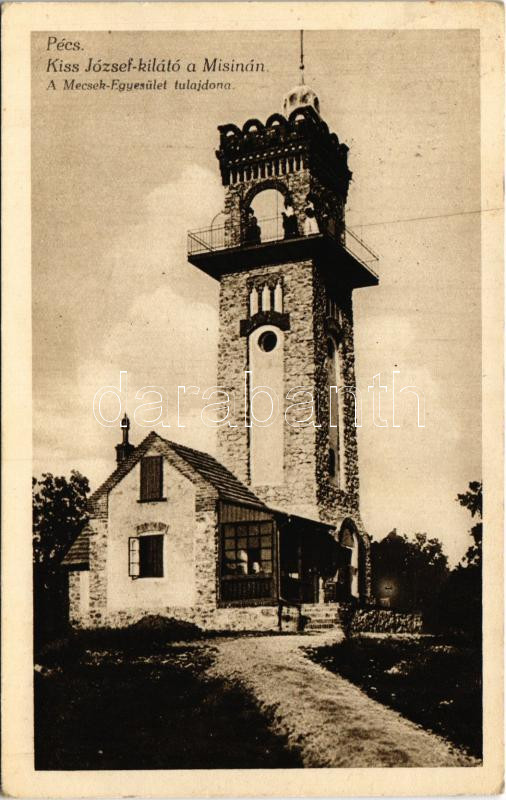 1931 Pécs, Kiss József kilátó a Misinán - A Mecsek Egyesület tulajdona... https://www.darabanth.com/de/432-Fernauktion/432.0/Ansichtskarten/Ungarn~2000005/1931-Pecs-Kiss-Jozsef-kilato-a-Misinan-A-Mecsek-Egyesulet-tulajdona-EK~II2784551
