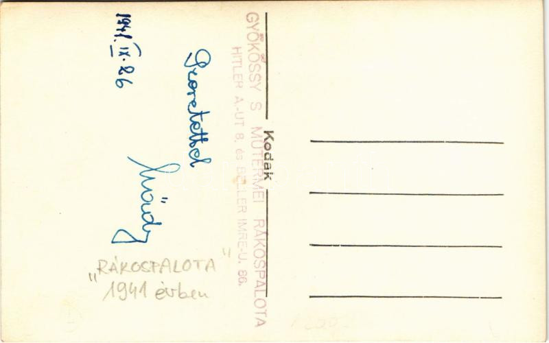 Beschreibung: 1941 Budapest XV. Rákospalota, hölgy. Gyökössy S. photo