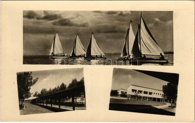 Beschreibung: ~1950 Balatonújhely (Siófok), vitorlások. Képzőművészeti Alap