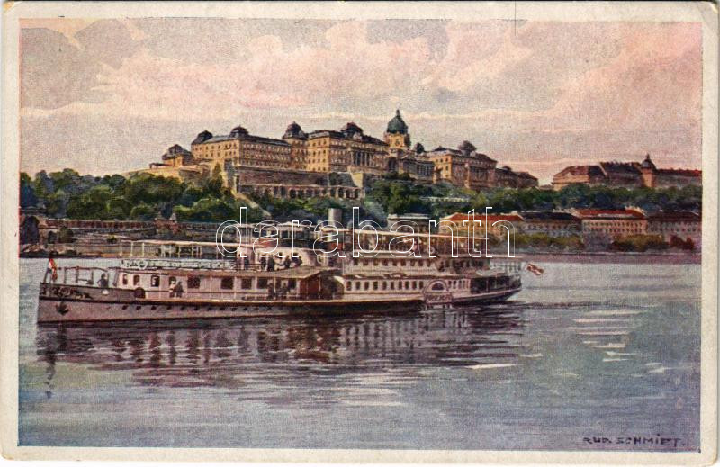 Beschreibung: Budapest I. Királyi vár, gőzhajó. Első Cs. és kir. Szab. Duna-Gőzhajózási Társaság s: Rud. Schmidt (EK)