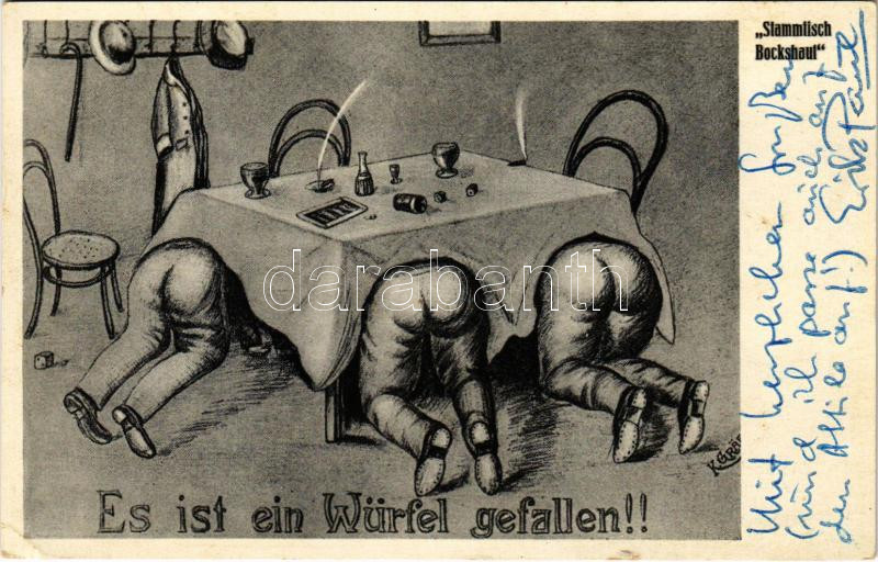 1959 Es ist ein Würfel gefallen! / Német vendéglő humoros reklámlapja ... https://www.darabanth.com/de/432-Fernauktion/432.0/Ansichtskarten/Werbungen~2000042/1959-Es-ist-ein-Wurfel-gefallen-Nemet-vendeglo-humoros-reklamlapja-Die-Bockshaut-Hotel-Res~II2777434