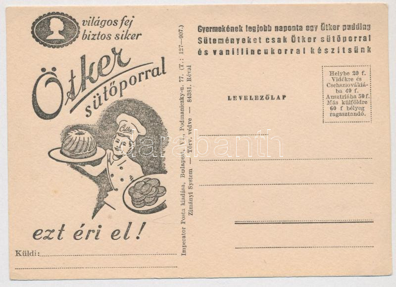 Beschreibung: Világos fej biztos siker - Ötker sütőporral ezt éri el! Imperator Posta kiadása / Hungarian baking powder's advertisement (EK)