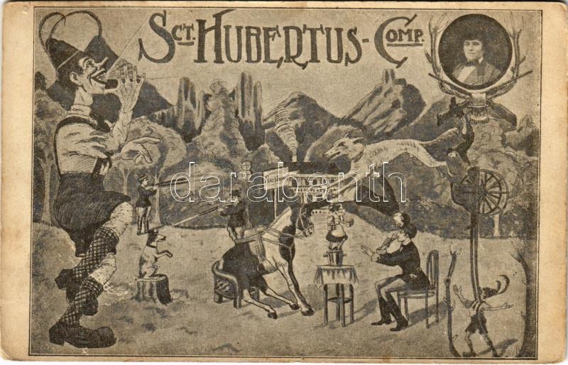 1917 Sct. Hubertus-Comp. / Circus company's advertisement art pos... https://www.darabanth.com/de/432-Fernauktion/432.0/Ansichtskarten/Zirkus~2000019/1917-Sct-Hubertus-Comp-Circus-companys-advertisement-art-postcard-acrobats-lyukak-pinholes~II2781713