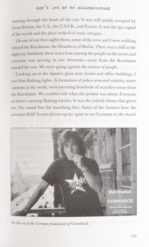 Eric Burdon-J. Marshall Craig: Don't let me be misunderstood. New York,2001.Thunder's Mouth Press. Angol nyelven. Fekete-fehér fotóanyaggal illusztrált. Kiadói kartonált papírkötés, kiadói papír védőborítóban. A művész, Eric Burdon (1941-) világhírű rockénekes, az egykori "The Animals" frontembere által sajátkezűleg DEDIKÁLT példány. / Eric Burdon-J. Marshall Craig: Don't let me be misunderstood. New York,2001.Thunder's Mouth Press. With English language. Black-and-white photographs. Hardback cover, in paper cover. With autograph signature of Eric Burdon. Eric Burdon (1941-) rock and blues singer, the frontman of the world famous "The Animals" rock band.