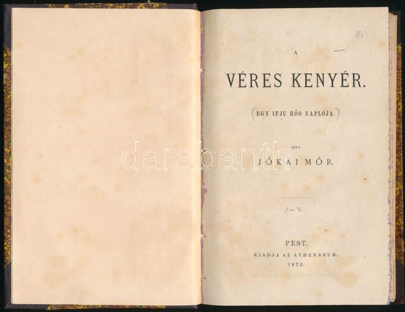 Jókai Mór: A véres kenyér. Egy ifju hős naplója. Első kiadás.; Hozzákötve: