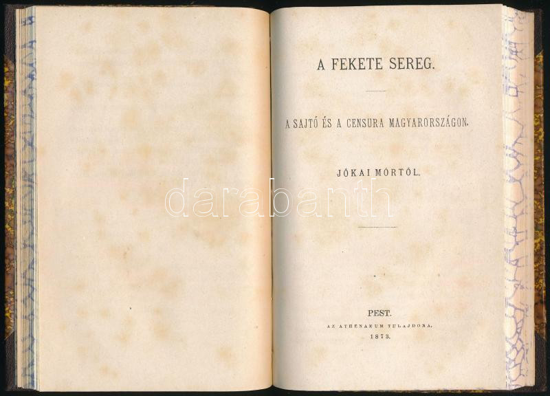 Pest, 1872-1873, Heckenast Gusztáv, 87 p.; 126 p. Korabeli átkötött félvászon-kötés, márványozott lapélekkel.