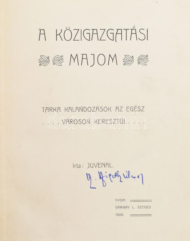 Juvenal [Szigethy Vilmos, Sz.]: A közigazgatási majom Tarka kalandozás... https://www.darabanth.com/de/432-Fernauktion/432.0/Bucher/Bucher-Andere-kuriositaten~1000037/Juvenal-Szigethy-Vilmos-Sz-A-kozigazgatasi-majom-Tarka-kalandozasok-az-egesz-varoson-keres~II2782240