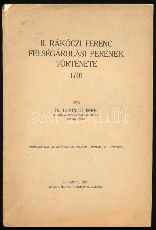 Lukinich Imre: II. Rákóczi Ferenc felségárulási perének története. 170... https://www.darabanth.com/de/432-Fernauktion/432.0/Bucher/Bucher-Geschichte~1000010/Lukinich-Imre-II-Rakoczi-Ferenc-felsegarulasi-perenek-tortenete-1701-Bp-1935-MTA-143~II2784077
