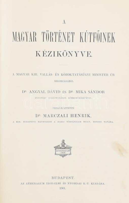 Marczali Henrik, Dr.: A magyar történet kútfőinek kézikönyve