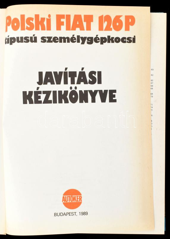 Polski Fiat 126P típusú személygépkocsi javítási kézikönyve. Bp., 1989... https://www.darabanth.com/de/432-Fernauktion/432.0/Bucher/Bucher-Technik~1000030/Polski-Fiat-126P-tipusu-szemelygepkocsi-javitasi-kezikonyve-Bp-1989-Autoker-Fekete-feh~II2778435