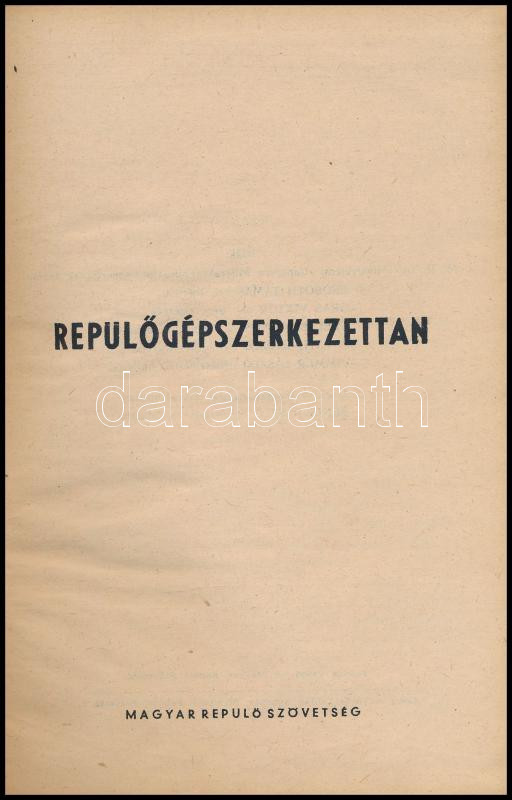 Repülőgépszerkezettan. Összeáll.: Benis László. Bp.,(1954.), Magyar Repülő Szövetség. Gazdag képanyaggal illusztrált. Kiadói kissé kopott félvászon-kötés.