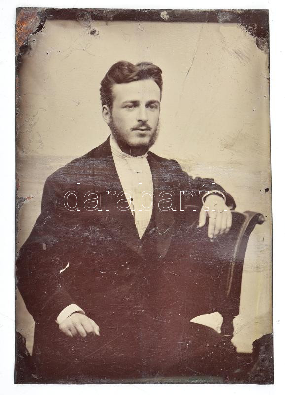 cca 1885 Férfiportré, ferrotípia, 9×6 cm https://www.darabanth.com/de/432-Fernauktion/432.0/Fotografie/Foto~500022/cca-1885-Ferfiportre-ferrotipia-9C3976-cm~II2784736