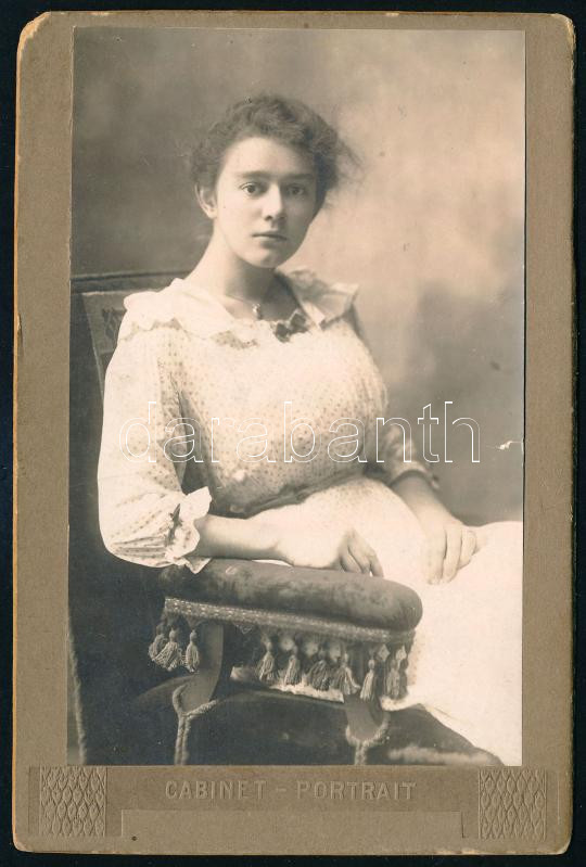 cca 1920 Fiatal lány portréja, keményhátú fotó, 14×8,5 cm https://www.darabanth.com/de/432-Fernauktion/432.0/Fotografie/Foto~500022/cca-1920-Fiatal-lany-portreja-kemenyhatu-foto-14C3978-5-cm~II2785026