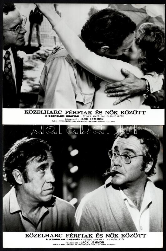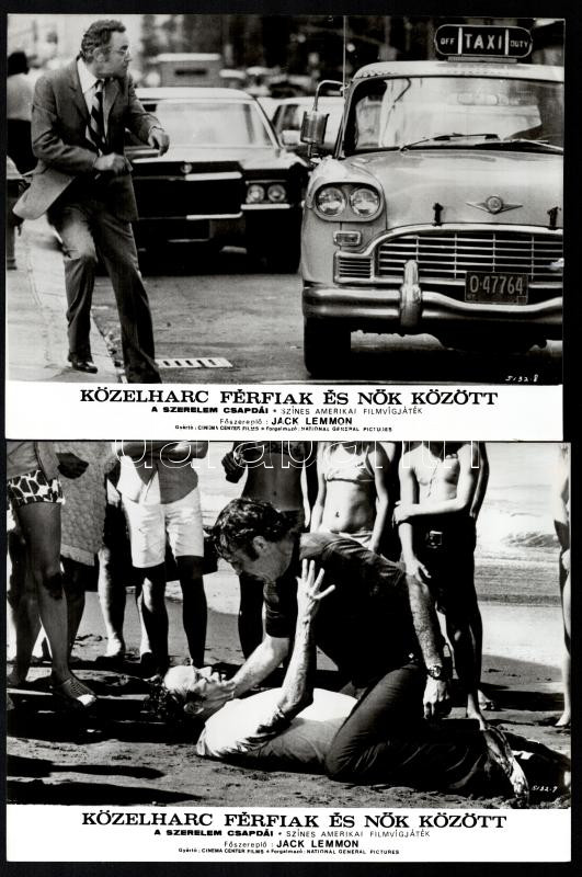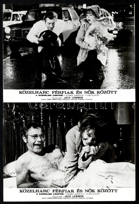 cca 1972 ,,Közelharc férfiak és nők között" című amerikai filmvígjáték jelenetei és szereplői (főszereplő Jack Lemmon), 7 db vintage produkciós filmfotó, ezüst zselatinos fotópapíron, a használatból eredő - esetleges - kisebb hibákkal, 18x24 cm