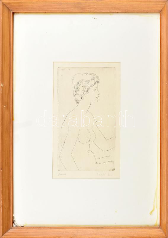 Beschreibung: László Gyula (1910-1998): ,,Modell" Női akt. Rézkarc, papír, jelzett, üvegezett fakeretben, 19x11 cm,