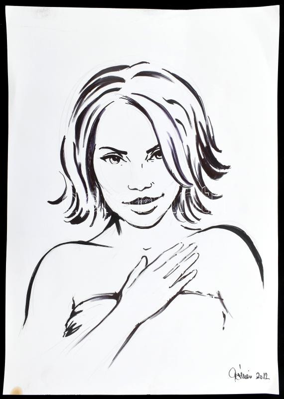 Beschreibung: Azonosítatlan jelzéssel: Női arc. Tus, papír. Jelzett. 30x42 cm