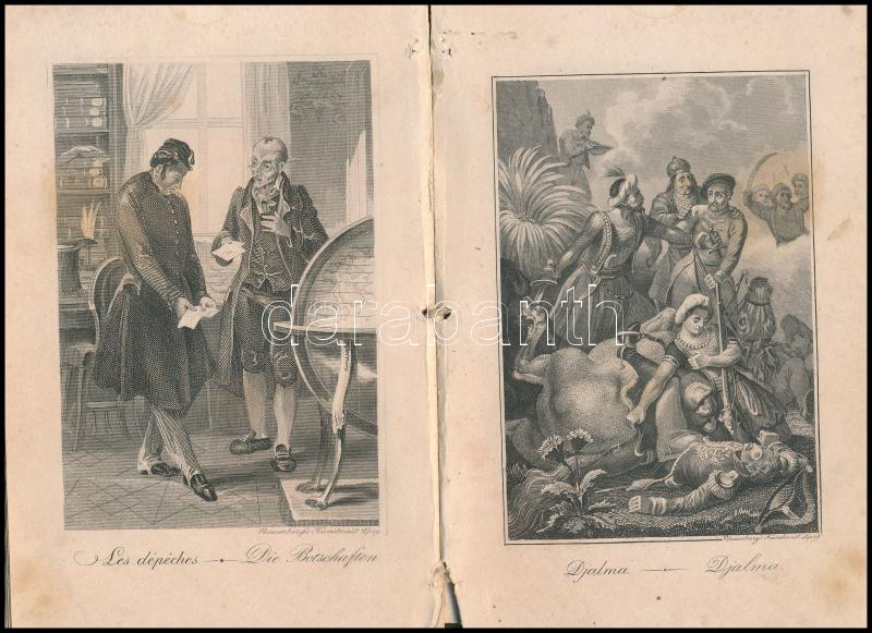 34 db metszetet tartalmazó könyv, Naumburgs Kunstanstalt Leipzig, XIX. sz. második fele. Viseltes, szétváló állapotban, kijáró lapokkal, lapméret: 17x11 cm