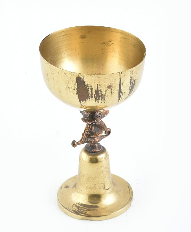 Beschreibung: Muharos Lajos: Iparművész réz és zománc serleg, szörnyecskével, Jelzés nélkül 17 cm