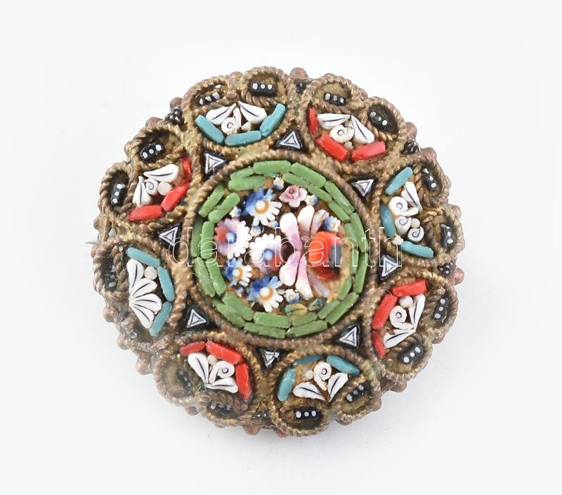 Muránói mikromozaikos bross, d: 23 mm https://www.darabanth.com/de/432-Fernauktion/432.0/Kunst-Dokumente-andere-Sammelgebiete/Flohmarkt~500013/Muranoi-mikromozaikos-bross-d-23-mm~II2788367