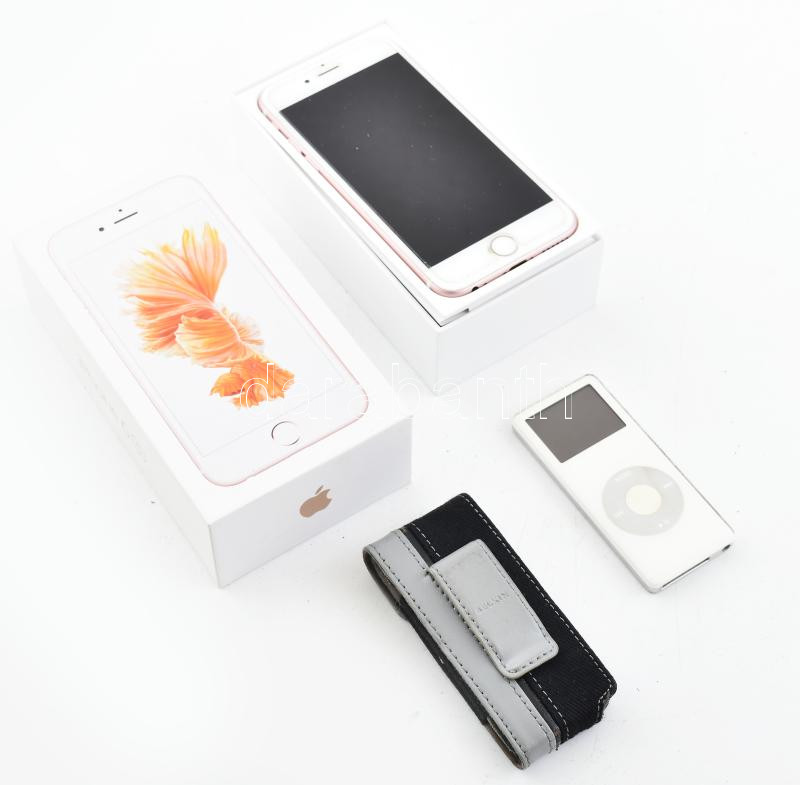 Beschreibung: iPhone 6 S mobiltelefon, tartozékokkal, eredeti dobozában, használt, de működőképes állapotban. + iPod 1 GB, tokban, használt, kipróbálatlan állapotban.