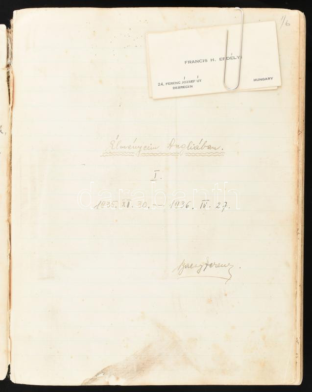 1935 Eszperantó tanár naplója angliai utazásról magyar nyelven, néhány... https://www.darabanth.com/de/432-Fernauktion/432.0/Kunst-Dokumente-andere-Sammelgebiete/Historische-Dokumenten-Handschriften~500020/1935-Eszperanto-tanar-naploja-angliai-utazasrol-magyar-nyelven-nehany-keppel-ujsegcikke~II2781822