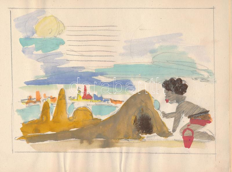 Beschreibung: cca 1965 Róna Emy (1904-1988) vázlatfüzete gyerekrajz-illusztrációkkal, 18×13 cm