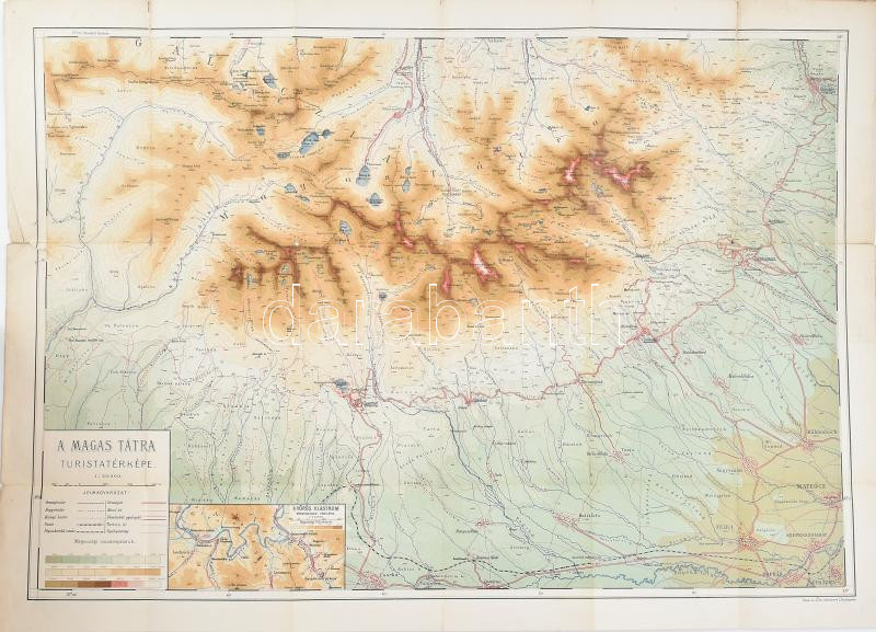 Beschreibung: A Magas-Tátra turistatérképe, 1:50 000, jelmagyarázattal, rajz és lith. Schubert Budapest, szakadással, 50×69 cm