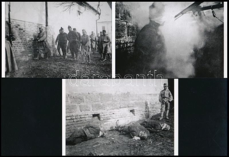 Beschreibung: cca 1916 Katonaszökevények kivégzése az I. világháborúban, 3 db mai nagyítás, 10x15 cm