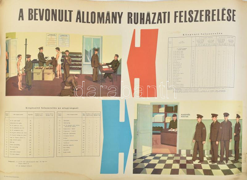 cca 1960 A bevonult állomány ruházati felszerelése. Nagyméretű tábla, karton, Honvédelmi Minisztérium, MN Térk. Int., lapszéli kisebb szakadásokkal és folttal, feltekerve, 70x100 cm