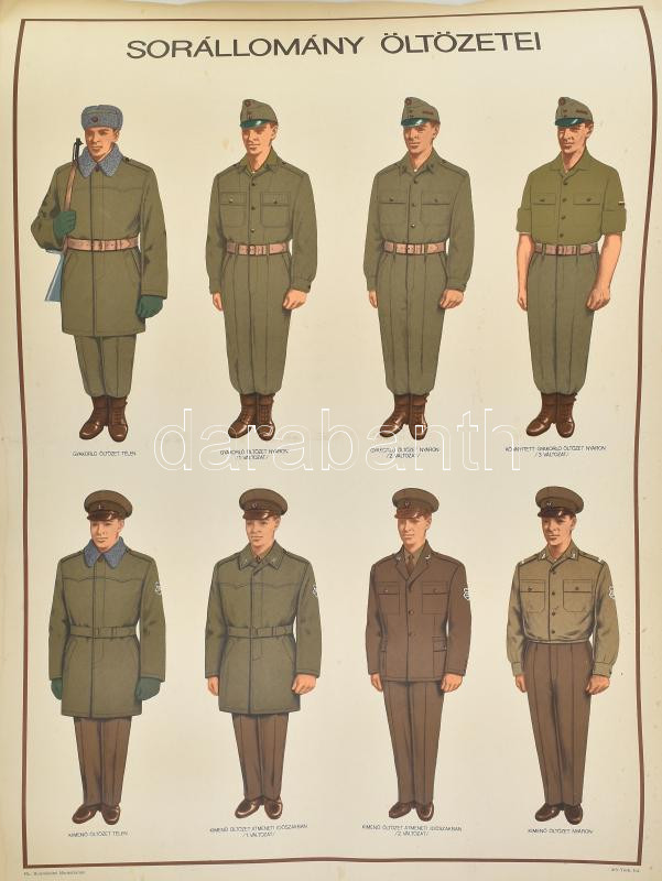 cca 1960 Sorállomány öltözetei (Magyar katonai egyenruhák), nagyméretű... https://www.darabanth.com/de/432-Fernauktion/432.0/Kunst-Dokumente-andere-Sammelgebiete/Militaria~500031/cca-1960-Sorallomany-oltozetei-Magyar-katonai-egyenruhak-nagymeretu-tabla-ofszet-karton~II2787886