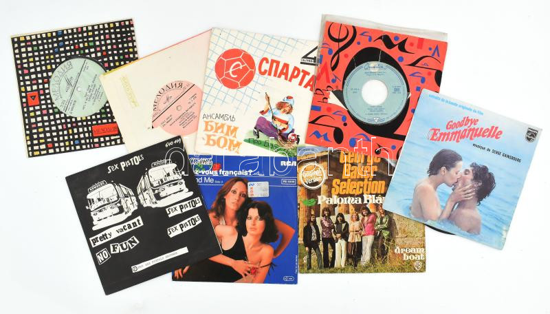Beschreibung: 8 db kis alakú könnyűzenei bakelit lemez
