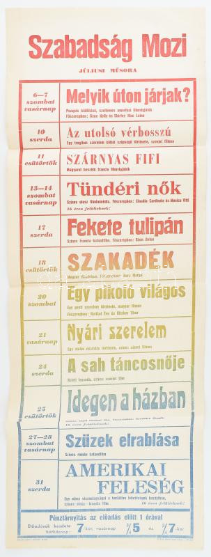 1968 A szabadság mozi júliusi műsora. Rácsplakát 350 pld 30x80 cm https://www.darabanth.com/de/432-Fernauktion/432.0/Kunst-Dokumente-andere-Sammelgebiete/Plakat~1000003/1968-A-szabadsag-mozi-juliusi-musora-Racsplakat-350-pld-30x80-cm~II2779808