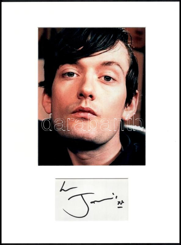 Jarvis Cocker (1963- ) zenész, a Pulp együttes alapítójának és frontemberének autográf aláírása és fotója, paszpartuban, tanúsítvánnyal, teljes méret: 40x30 cm / Jarvis Cocker musician, founder and frontman of the band Pulp, autograph signature and photo, mounted, with certificate