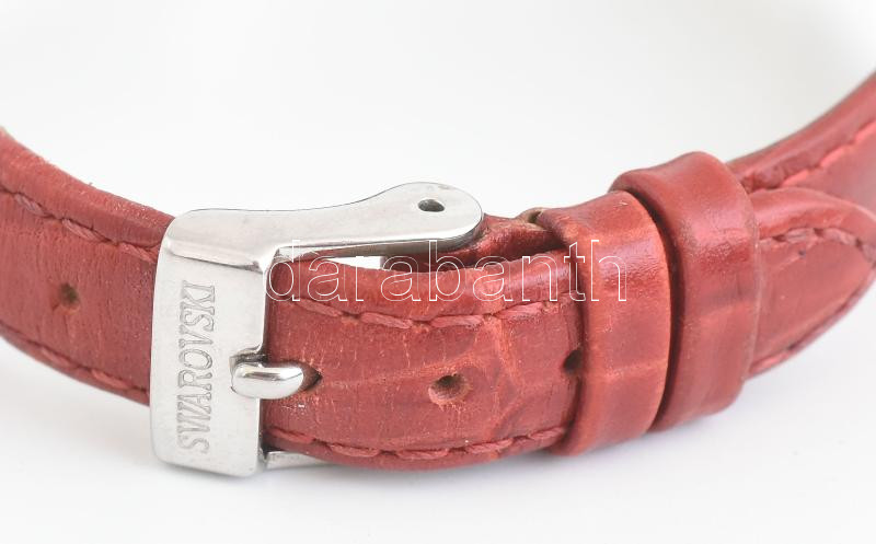 Beschreibung: Swarovski quartz női karóra, kövekkel kirakva, működésre nem ellenőrzött, bőr szíjjal, számlap méret: 2,5x1 cm